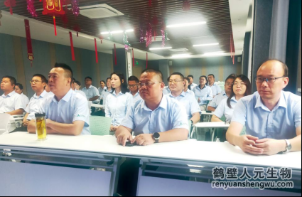 9月3日上午,于鶴壁市東楊工業(yè)區(qū)人元生物技術發(fā)展有限公司(文中簡稱人元生物)二樓會議室,窗外一場金風送爽的秋雨方歇,室內全體人員正襟危坐、著裝齊整、神情莊重,目不轉睛地注視著大屏幕,耳畔傳來自大屏幕的渾厚聲音: